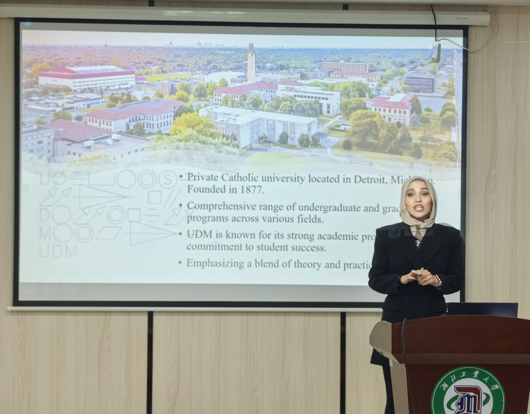 为增进学生对外方课程体系的认知,拓宽国际视野,提供多元的学习体验,底特律绿色工业学院于4月8日邀请底特律大学Dr. Matthew Van Cleave 和 Dr. Zeinab Hussein进行演讲。学院党委书记门奎英,副院长孙国栋、马玉婷和同学们认真聆听,座无虚席。