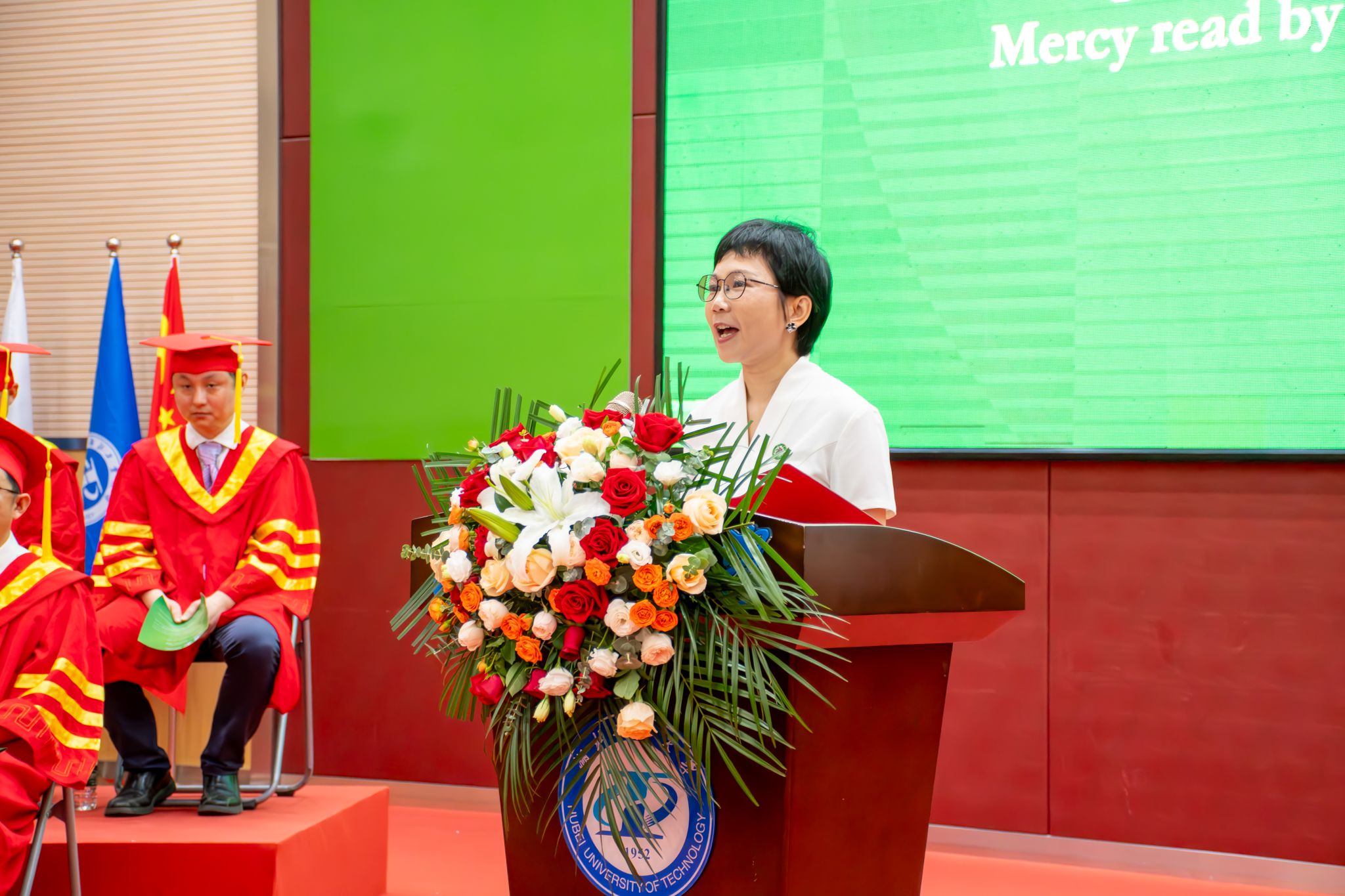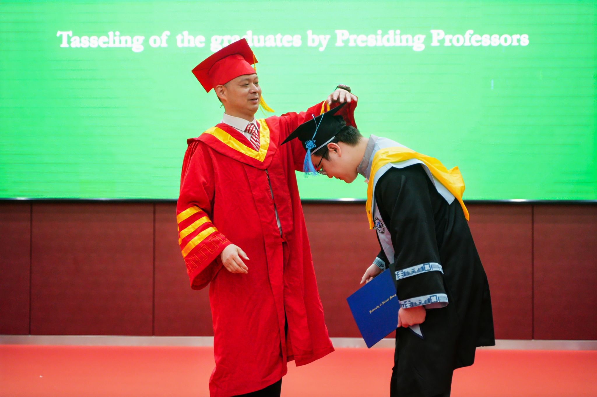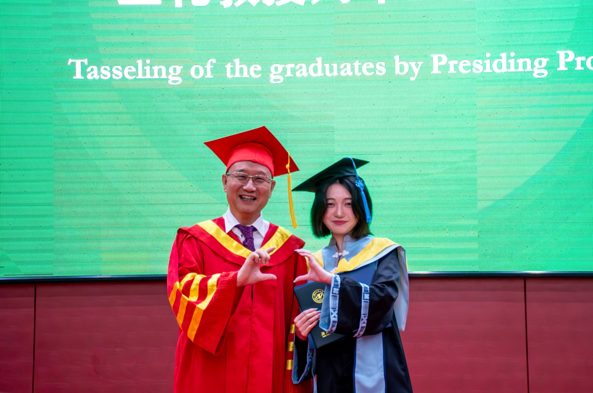 教务处副处长张高文、国际交流与合作处处长龙艳宣读学位授予文件。