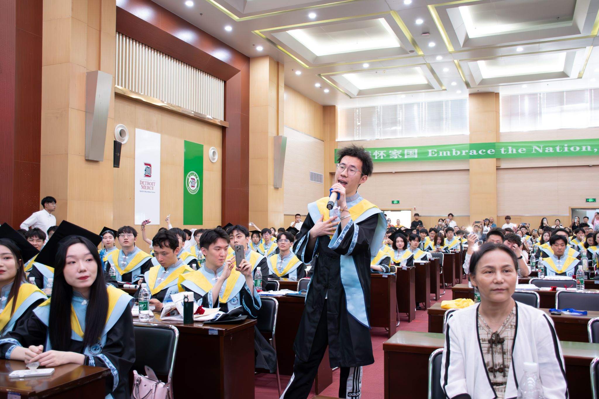 少年志四海,万里犹比邻。全体毕业生合唱《凤凰花开的路口》,共同回忆四年的大学时光,现场飘落彩带为毕业生们打开通往未来的大门。至此,底特律绿色工业学院2024届学生毕业典礼暨学位授予仪式圆满落幕。