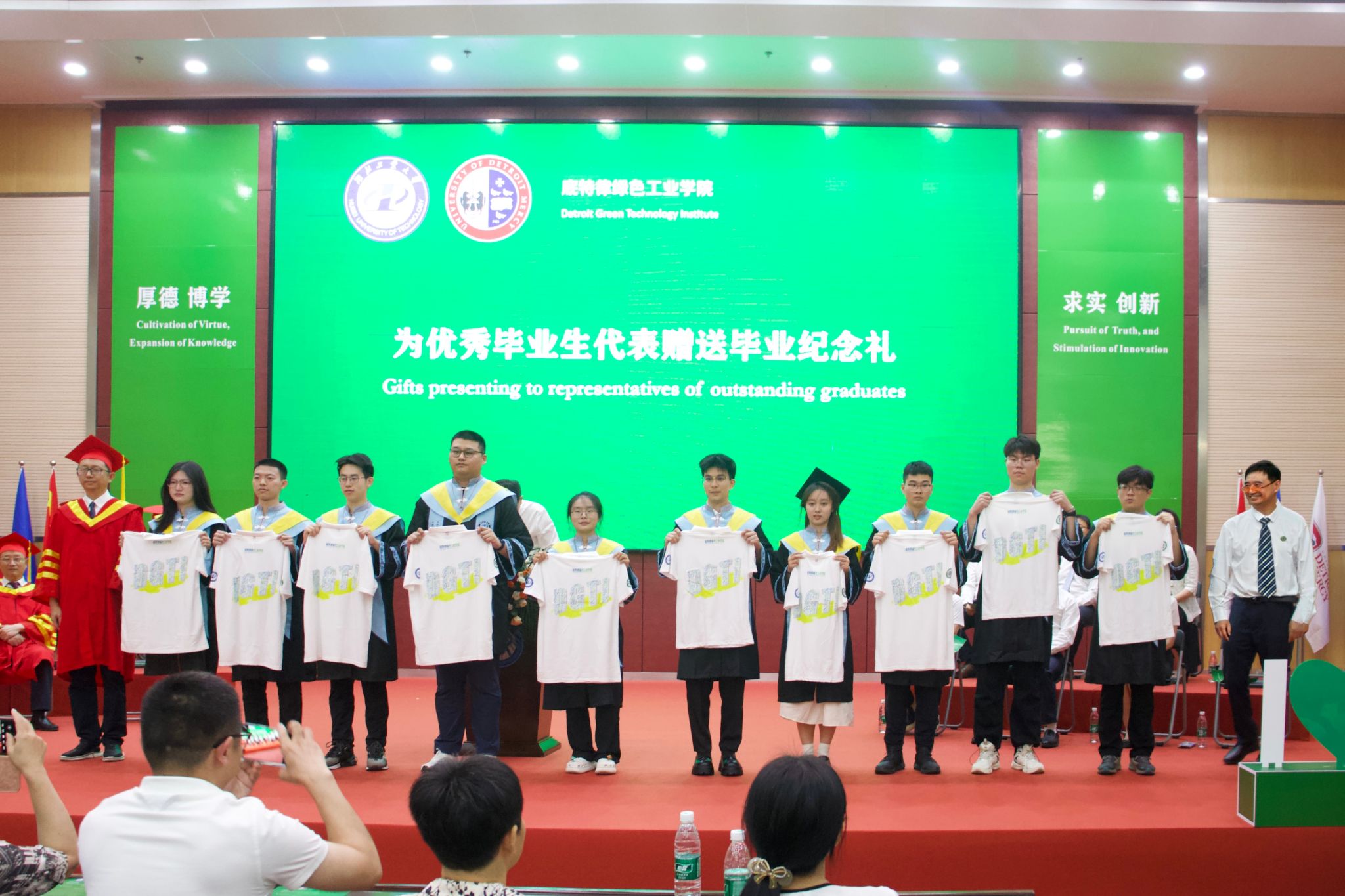 6月17日上午,底特律绿色工业学院2024届本科生毕业典礼在图书馆报告厅隆重举行。校党委书记彭育园教授出席仪式,党委教师工作部、学生工作部(处)、教务处、生与就业指导处、国际交流与合作处相关负责人,机械工程学院、电气与电子工程学院、土木建筑与环境学院、计算机学院领导及教师代表,底特律绿色工业学院(以下简称学院)全体教职员工,2024届毕业生及家长代表参加仪式。仪式由学院党委书记门奎英主持。