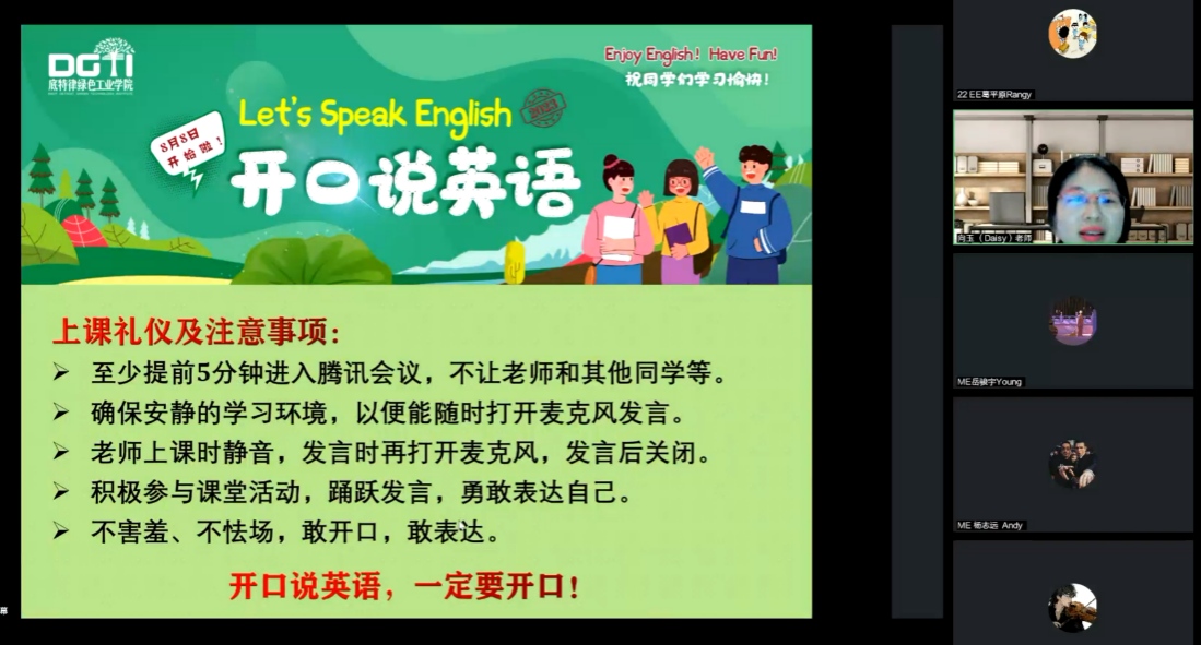 近日我参加了湖北工业大学底特绿绿色工业学院专门为新生们准备的“开口说英语”活动。与母语为英语的外教老师互动学习,极大地提高了我的语言水平。哪怕我原本的英语水平可能欠佳,但在老师与同学的和睦气氛中我相信提高也只是时间的问题。