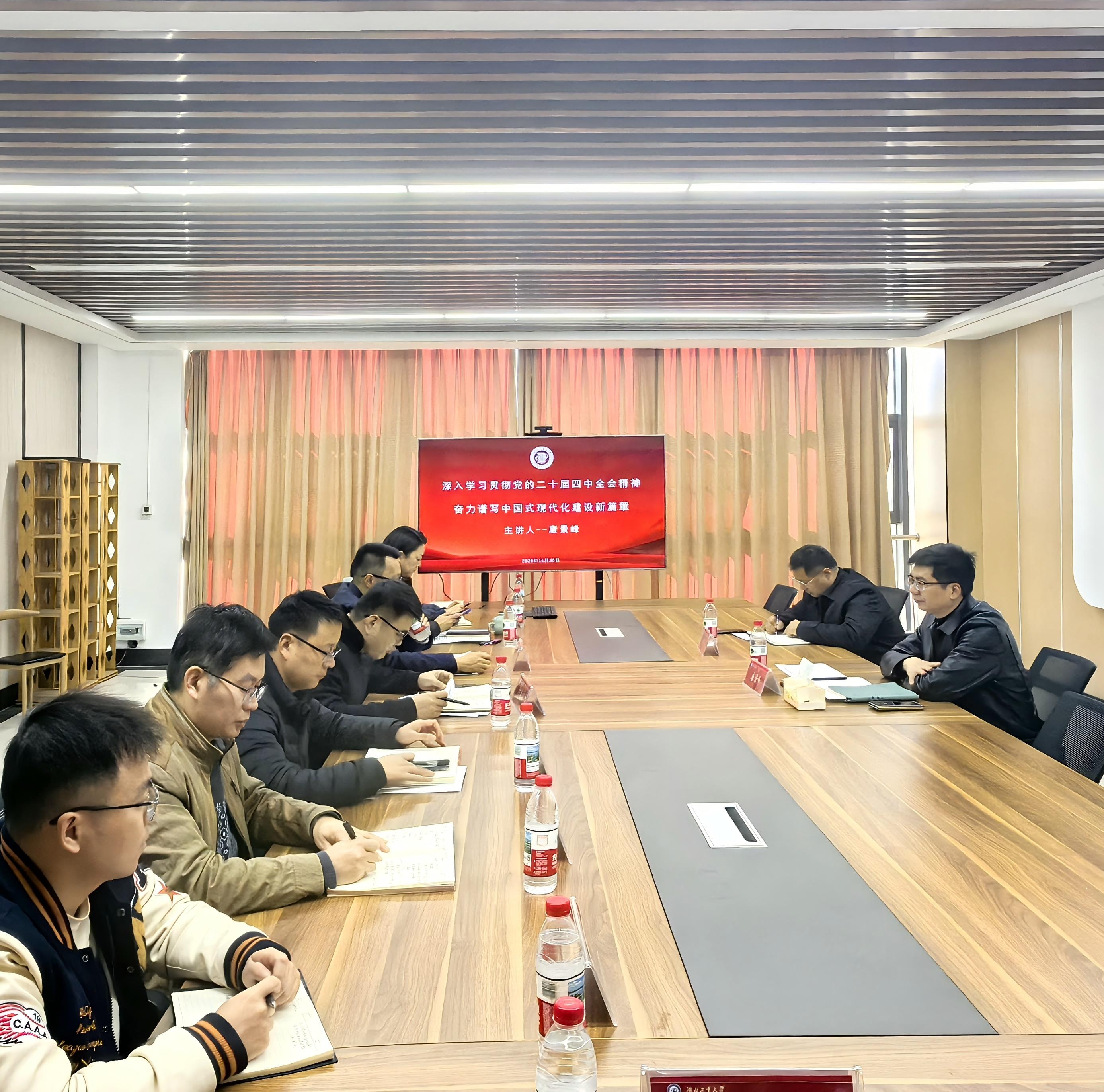 唐景峰以二十届四中全会召开的时代背景为切入点,传达中央、省委和学校党委关于学习贯彻全会精神的部署要求,概要介绍全会《中国共产党第二十届中央委员会第四次全体会议公报》精神和《中共中央关于制定国民经济和社会发展第十五个五年规划的建议》的基本内容。他指出,全会审议通过的《中共中央关于制定国民经济和社会发展第十五个五年规划的建议》,明确了“十五五”时期我国发展的指导思想、主要目标和重大任务,为全面推进中国式现代化建设提供了行动纲领。