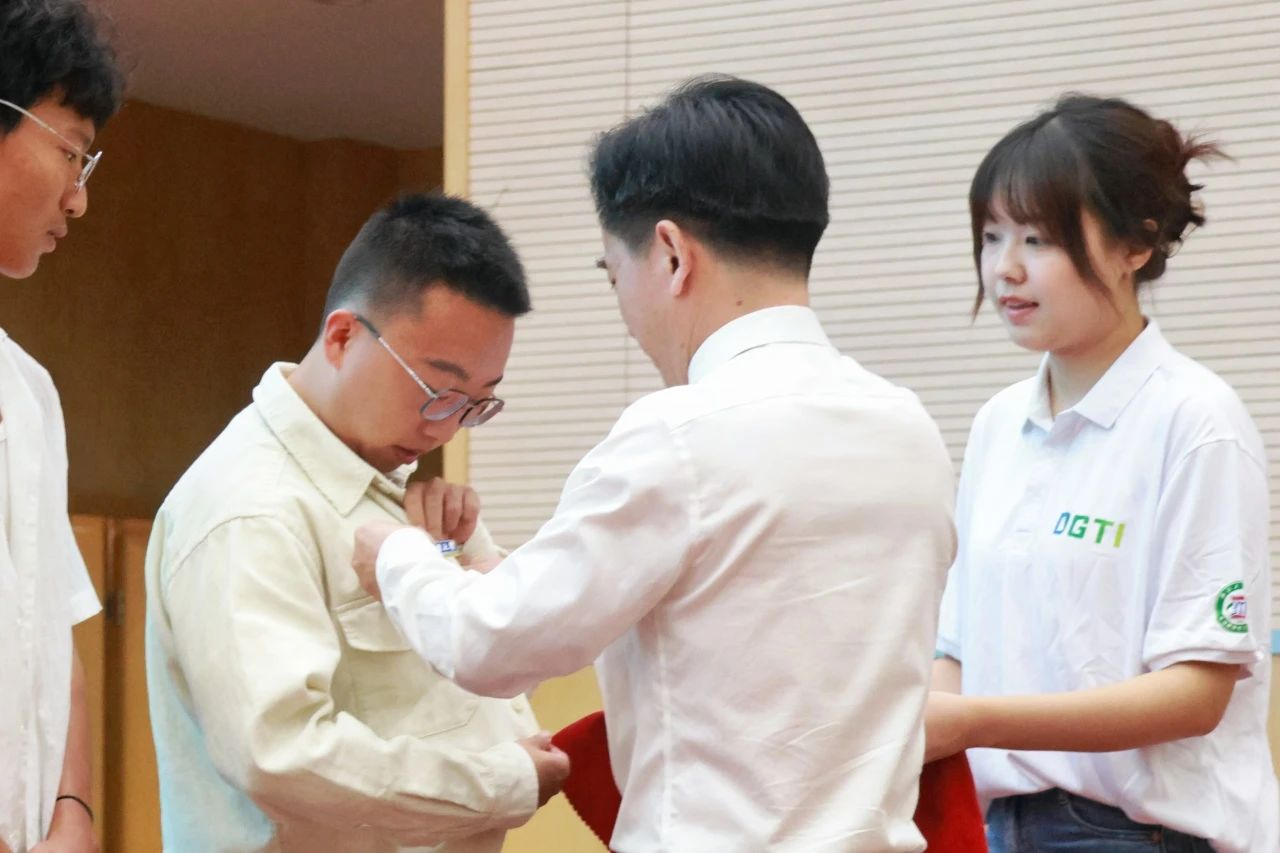 校党委常委、副校长宋小春为新生代表绶戴校徽,象征着新生正式成为湖北工业大学底特律绿色工业学院的一员。