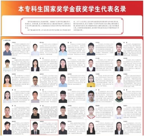 5月4日,《人民日报》(2020年05月04日 05-06 版)刊发了《本科生国家奖学金获奖学生代表名录》,名录中展示的110名学生是从2019年获得国家奖学金的全国6万名优秀本专科学生中经过严格选拔和评审产生的,湖北省仅6人入选,我校熊厚博同学是省属一本高校中唯一入选的学生代表。