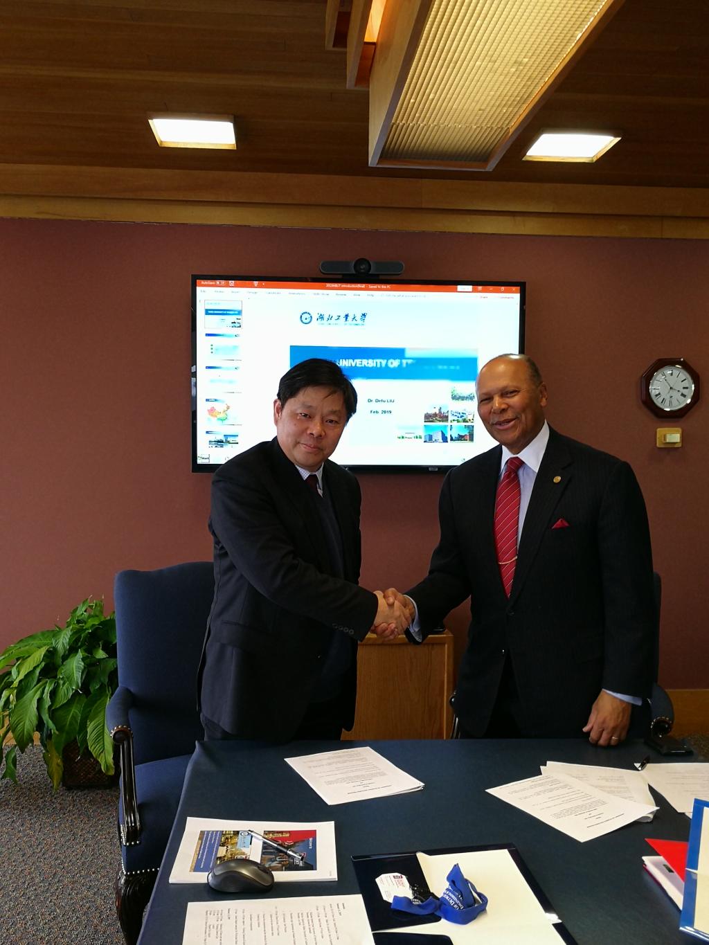 学校坚持开放办学,先后与美、德等30多个国家和港澳台地区130多所高校和研究机构建立合作关系,开办有本、硕、博不同层次的联合办学10余项,项目学生1300余人。学校现有国际学生900余名,常任外籍专家、教师50余名。土木建筑与环境学院获全省首个省级国际化发展示范学院。湖北工业大学底特律绿色工业学院获教育部批准设立。学校教育国际化水平不断提升,是湖北省扩大开放先进单位,教育国际化水平居湖北省高校前列。